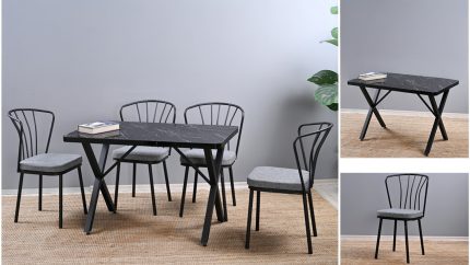 EFE SİYAH MERMER MASA + 4 SANDALYE